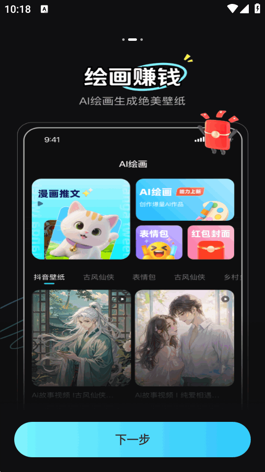 3、内置 AI 绘画功能,可生成 AI 壁纸、漫画风格插画、表情包、红包封面等素材,满足推文创作的视觉素材需求。