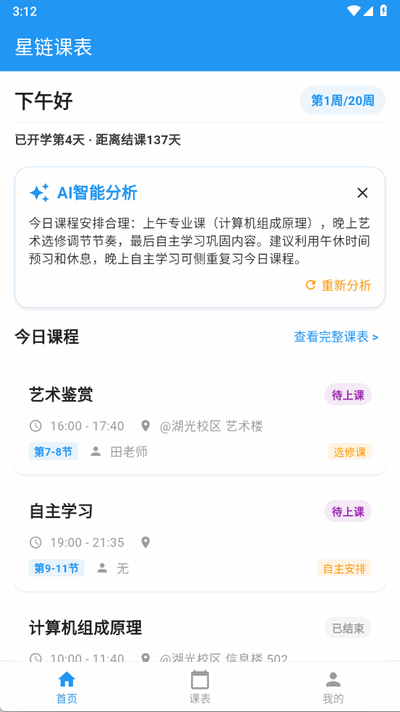 2、智能规划与提醒:融合AI与大数据技术,根据用户的课程安排和个人习惯生成每日最优学习计划,并提供智能行程提醒(如结合交通状况推送最佳出发时间)、作业考试分级预警等功能,帮助用户合理分配时间。