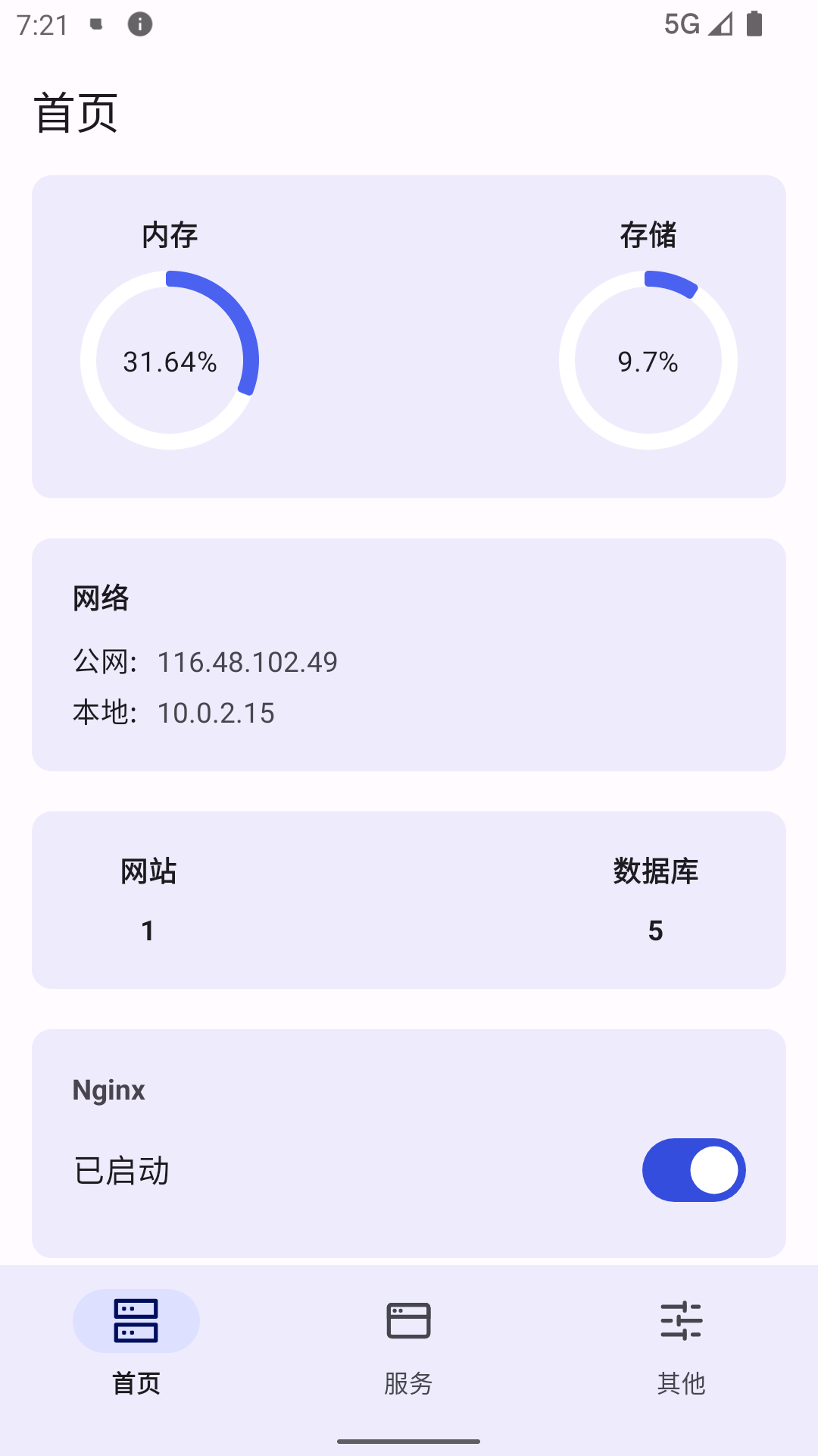 2、这里能看到手机内存和存储情况,网络情况,Nginx等