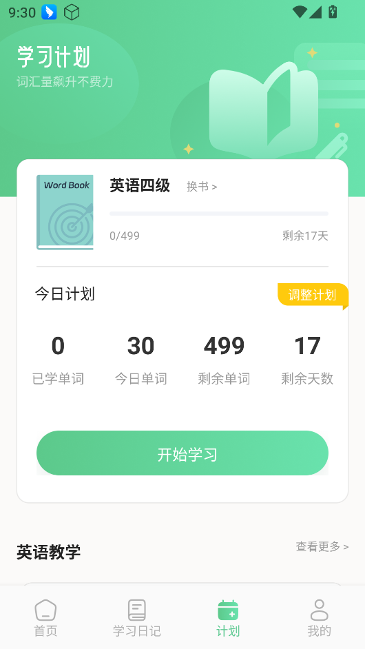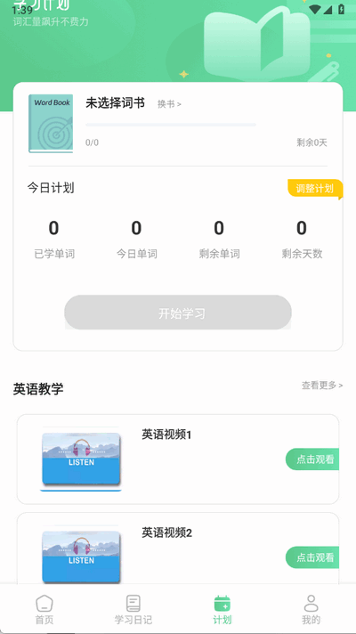 4、词库页面可选择词书进行学习,还能制定学习计划。