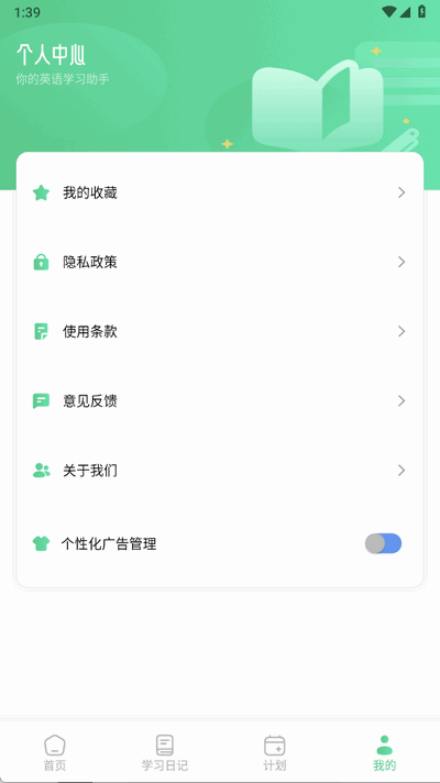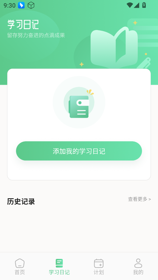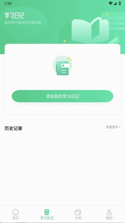 3、学习日记页面可添加学习日记,记录成长每一步。