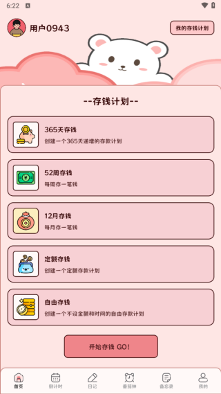 2、进入首页,提供五种不同存钱模式,可按需使用。