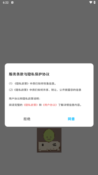 1、下载并安装后打开软件,需同意服务条款和隐私保护协议。