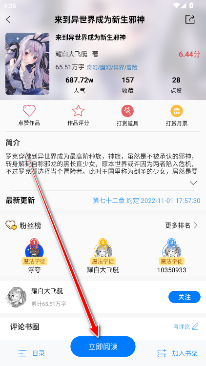 2、收藏评论打赏和月票:每部作品下方都可以收藏点赞和评论,还能给喜欢的作者送去丰富的礼物!