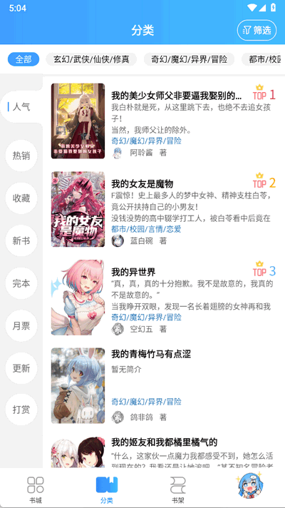 各种分类排行榜功能:热门小说一网打尽,从现在开始拒绝书荒!