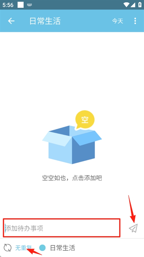 5、红框处添加事件,可选择点击左下角是否重复,随后右下角箭头处完成待办事件的创建。