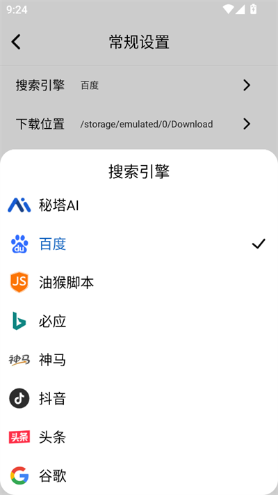 1、智能搜索强大:支持百度、秘塔AI等多种搜索引擎,具备高效的搜索能力,能快速准确地帮助用户找到所需讯息或资源;还设置了网址补全和搜索建议功能,让输入更快捷、浏览更顺畅。