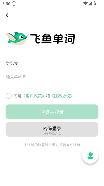 1、用户首先下载安装飞鱼单词,进入并登录app。