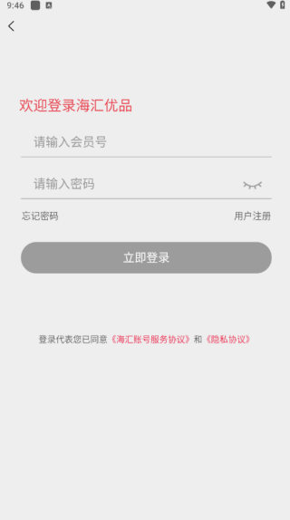 1、来到软件登录页面输入会员号、密码点击立即登录即可完成登录。