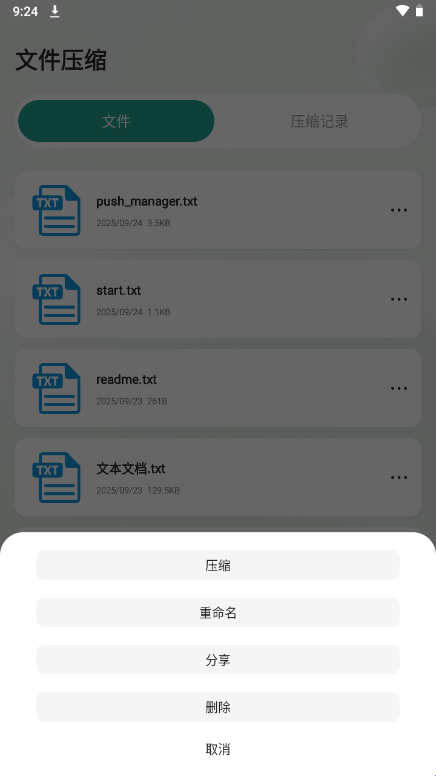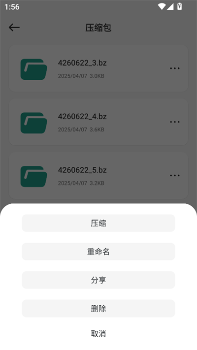 4.之后点击文件最右边的“三个点”按键后,点击“压缩”按键进入下一步