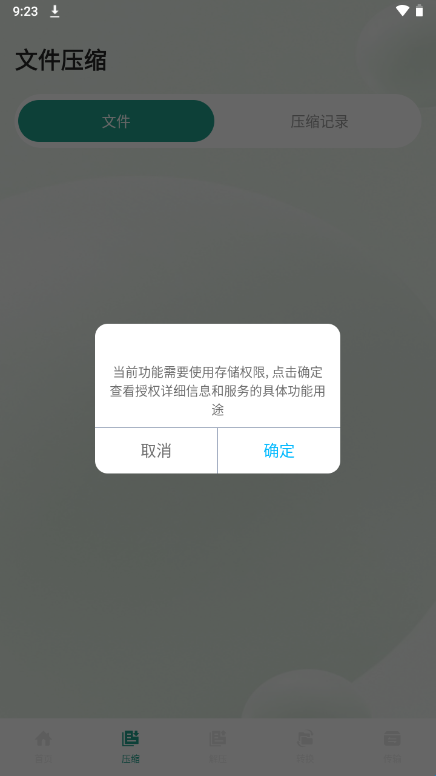 2.在软件首页界面找到底部菜单栏“压缩”功能按键进入下一步