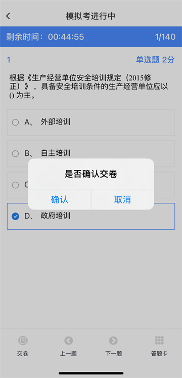 2、考试结束后,点击【交卷】按钮,点击【确定】提交。