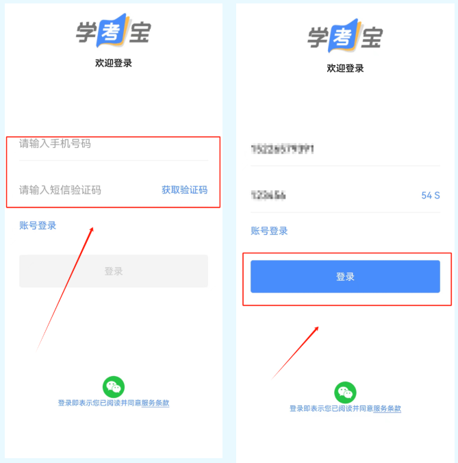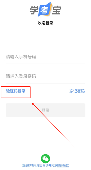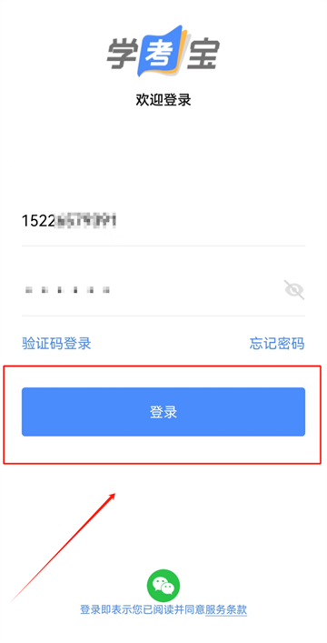 下载完毕后,打开APP,使用手机号码作为账号登录学考宝APP。