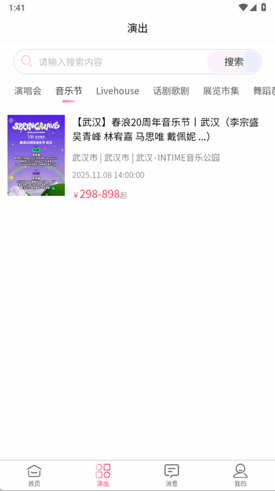 打开河马票务app,进入首页后可以直接搜索想看的演出