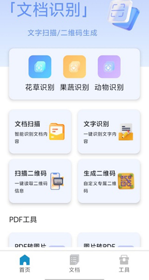 1、花草识别、果蔬识别、动物识别、文档识别功能都可以免费体验。