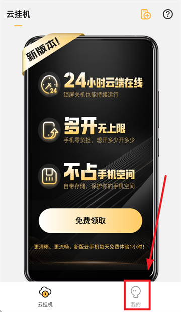 打开全民云手机app,进入后点击我的
