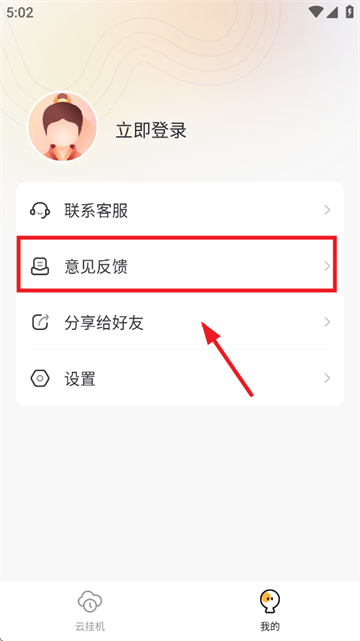 在我的界面点击意见反馈