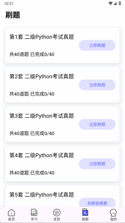 5、点击模拟考试,你能够真实地检测出自己学习的效果。