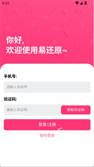 3、进入登录页面,输入账号和密码,点击登录即可,没有账号的用户可以使用手机号登录/注册