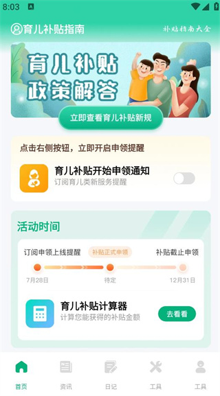 育儿补贴一键查app是一款一站线上办理指南,全国政策精准匹配,智能计算可申金额,帮助家长更好的申领育儿补贴,不仅如此,还有很多实用的工具软件助力用户更便捷的生活,有需要的用户快来下载吧。