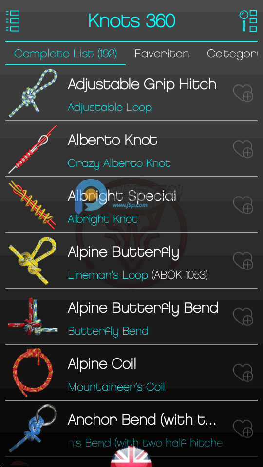 画面非常高清,可以随意查看打结的整个过程,还可以退回前一步重复观看打结的方法,3d绳结教程专业版(Knoten 360 Pro)是真正好用的绳结教程应用,动画很立体,每一步骤清晰易学习,整合了非常多生活中需要用到的绳结打法。