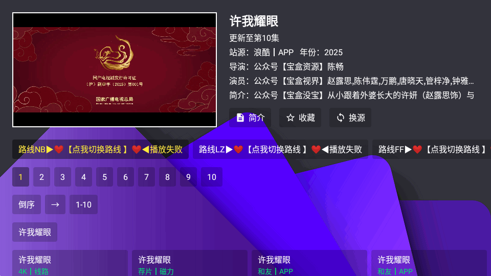 1、打开正在播放的影视剧,下方可以自由选择切换播放源。