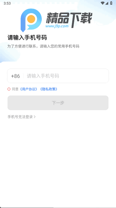 输入手机号,勾选同意 《用户协议》 《隐私政策》,点击下一步获取验证码登录注册即可