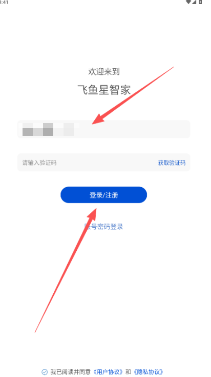 1、输入用户本人手机号码,点击“获取验证码”输入快速注册登录。