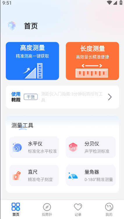 2、首页中心为用户提供了各种测量工具,如水平仪,分贝仪,直尺量角器等等。