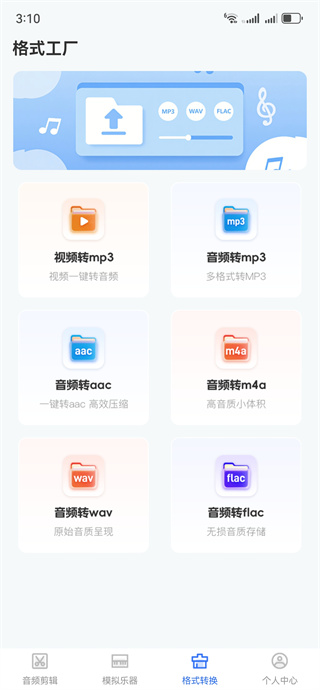 5、格式转换:兼容MP3、AAC、WMA、FLAC、M4A等多种主流格式互转,方便跨设备播放及分享。