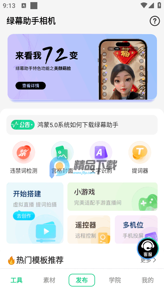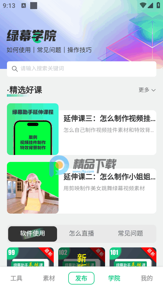 无论是直播还是拍短视频必备的一款辅助工具,绿幕助手app又名绿幕助手相机,软件是免费的版本,不需要vip会员就可以直接免费使用,所有功能都有,无任何的广告,同时拥有丰富的素材和使用教程可以观看,新手朋友最好在学院中查看详细的视频教程。