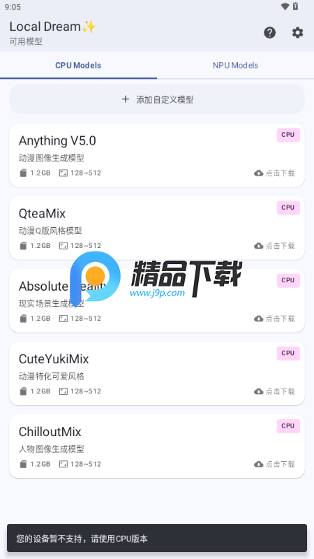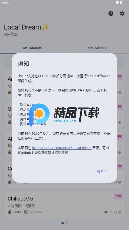 此APP支持在CPU/GPU和部分高通NPU上运行stable diffusion图像生成。