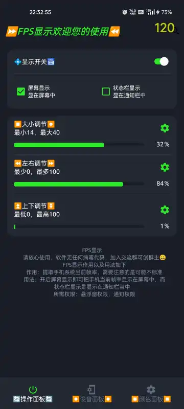 FPS显示APP是一款实用的工具软件,能够实时检测手机系统的帧率,帮助用户在玩游戏时实时了解帧率情况。它提供简洁直观的界面,让用户可以轻松查看当前帧率,确保游戏运行流畅。FPS显示APP还支持多种自定义设置,用户可以根据自己的需求调整显示位置和透明度。