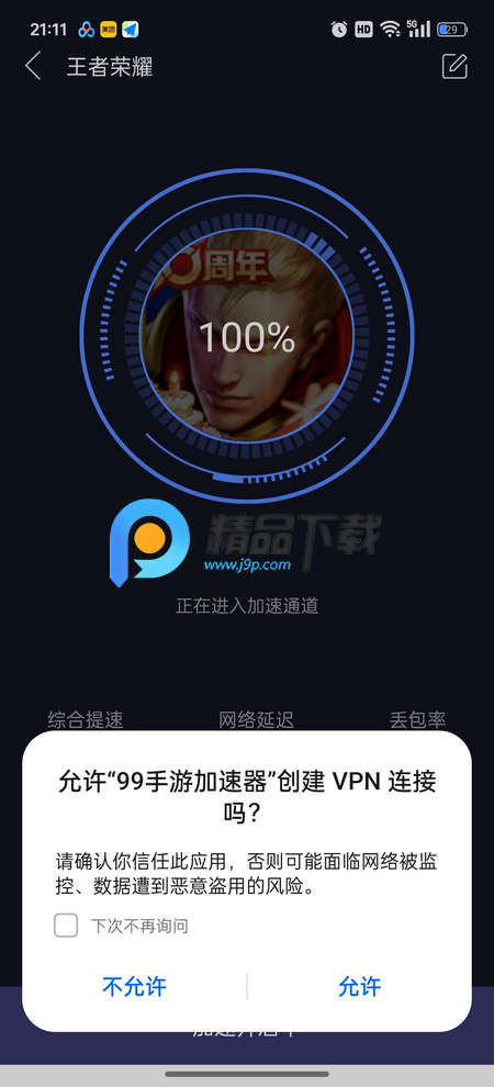 3、并且为了防止用户在玩游戏时加速器闪退,玩家可以自由设置软件的权限,也可以无视不操作。