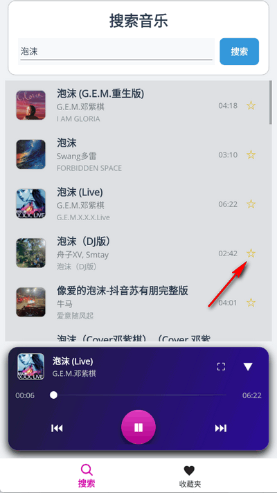 它还有“收藏夹”功能,遇到喜欢的歌点一下☆就能保存,后续想回顾时直接在“我的收藏”里找,不用再重新搜索,对“单曲循环爱好者”来说特别方便。