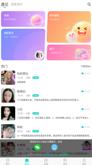 4、用户也可以在遇见专区,快速在线选择合适的人在线聊。
