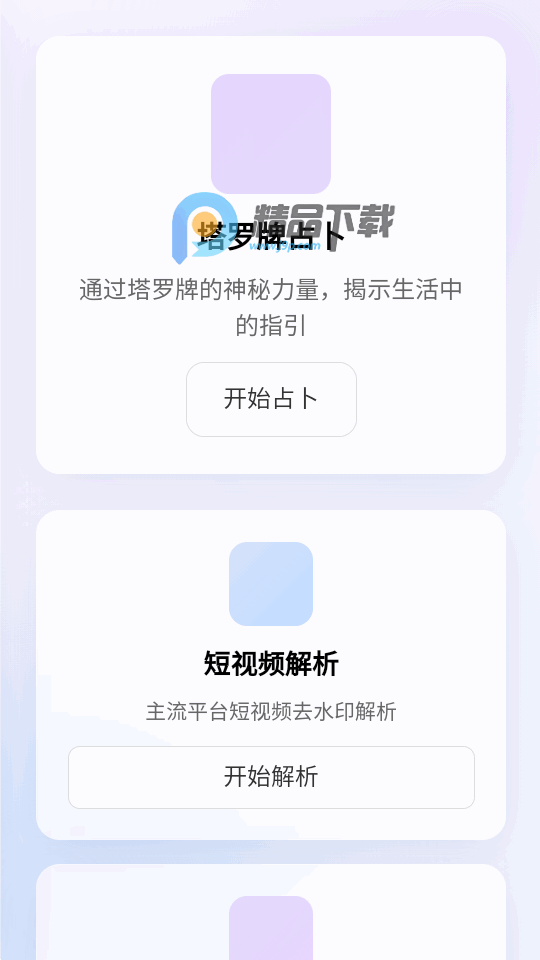 1、无需同时安装塔罗 APP 与解析工具,一个软件满足心灵指引、视频去水印、图集下载多元需求,节省设备存储空间与切换成本。