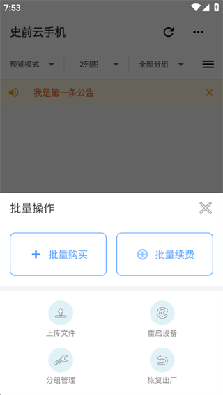 3、进入app可以查看全部分组,根据需要打造云端手机;