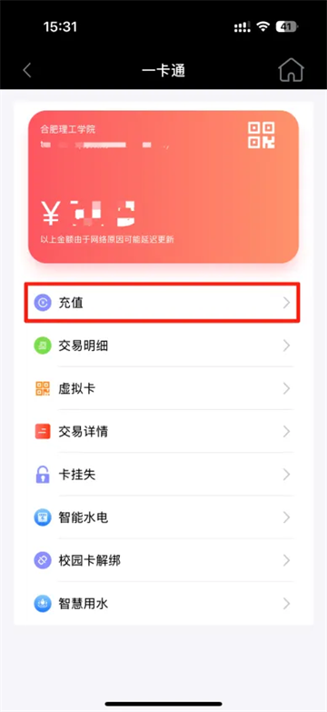 智慧合理工app一卡通充值使用指南