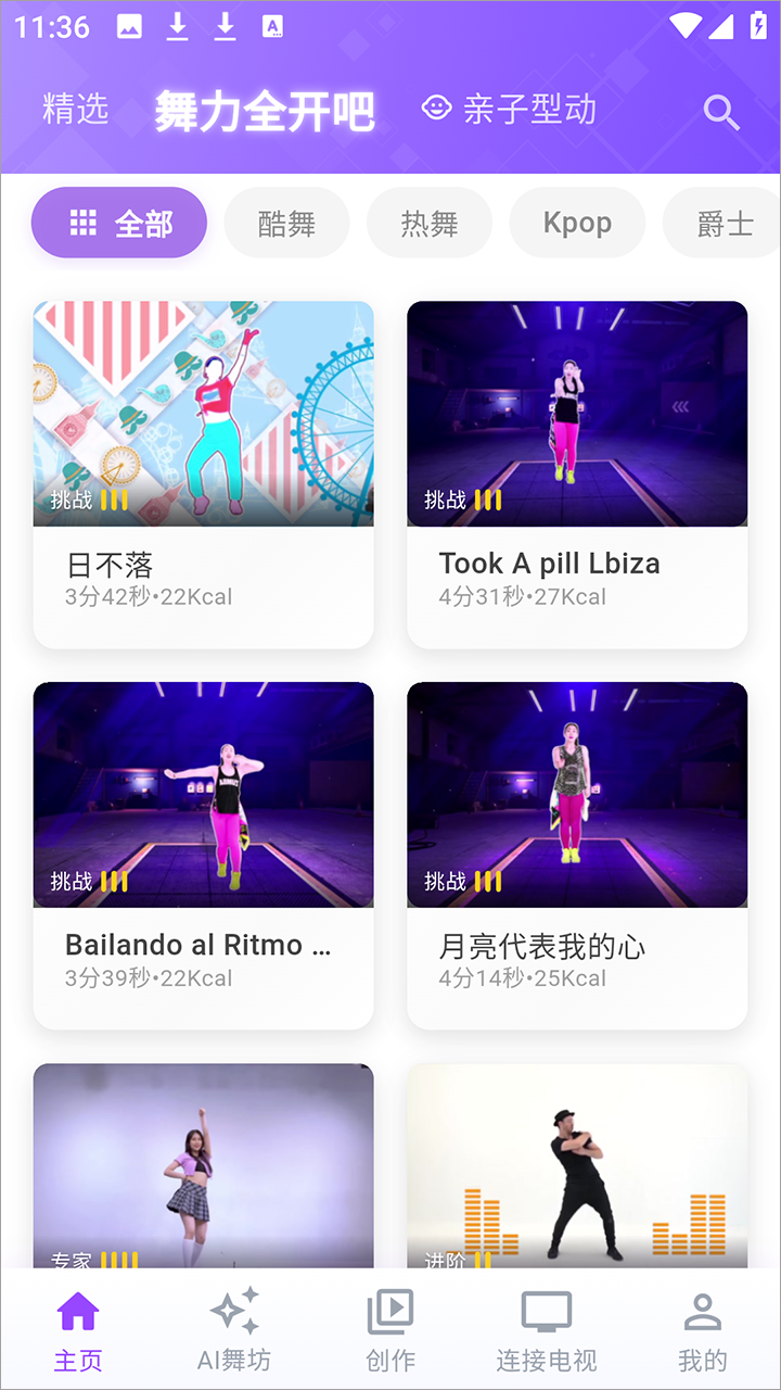 提供800+首舞蹈视频,涵盖不同类型、风格和难度,支持动态更新,用户永不枯燥。