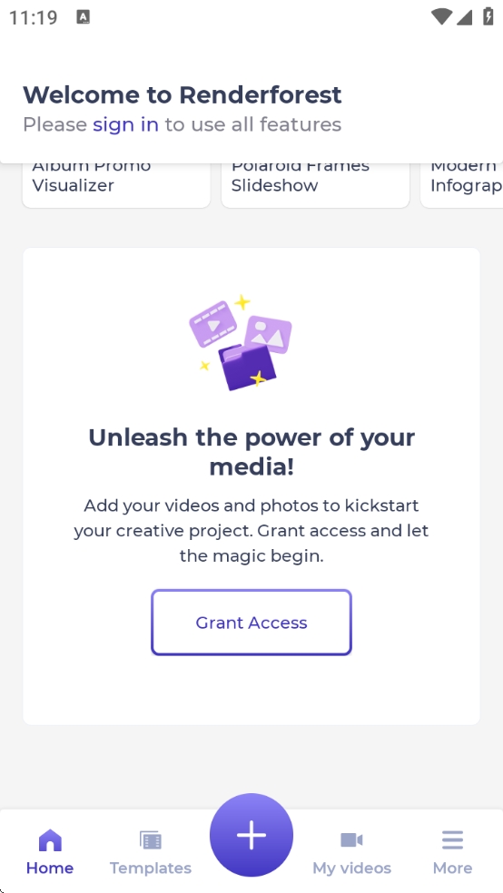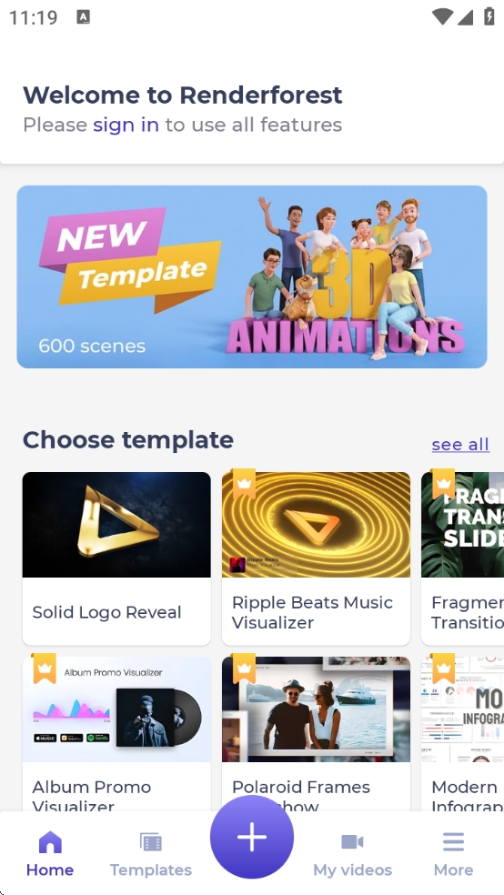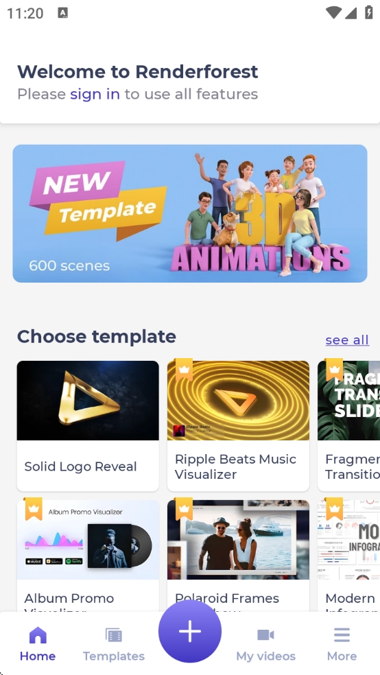 打开 Renderforest 软件,完成登录(需登录以使用全部功能),进入首页;