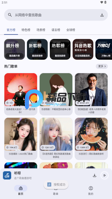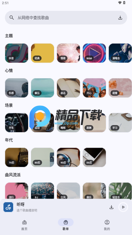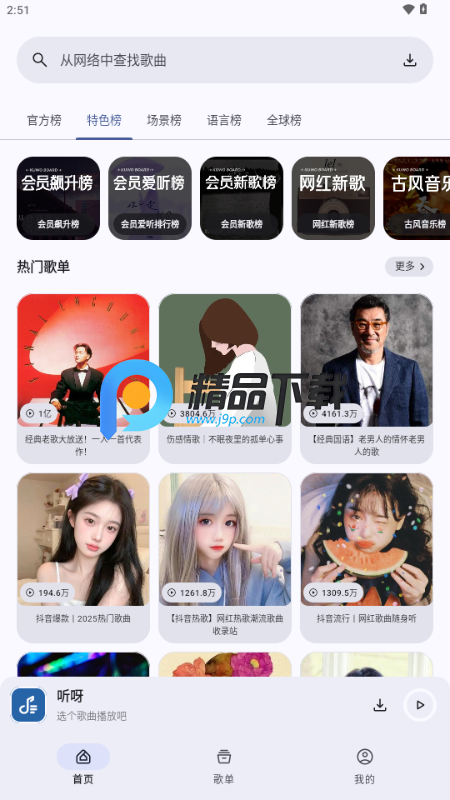 丰富歌单:提供多样化的歌单选择,涵盖各种音乐风格和类型。