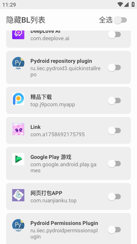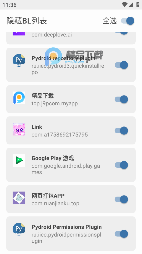 5、点右上角的全选可以一键快速隐藏所有包名。