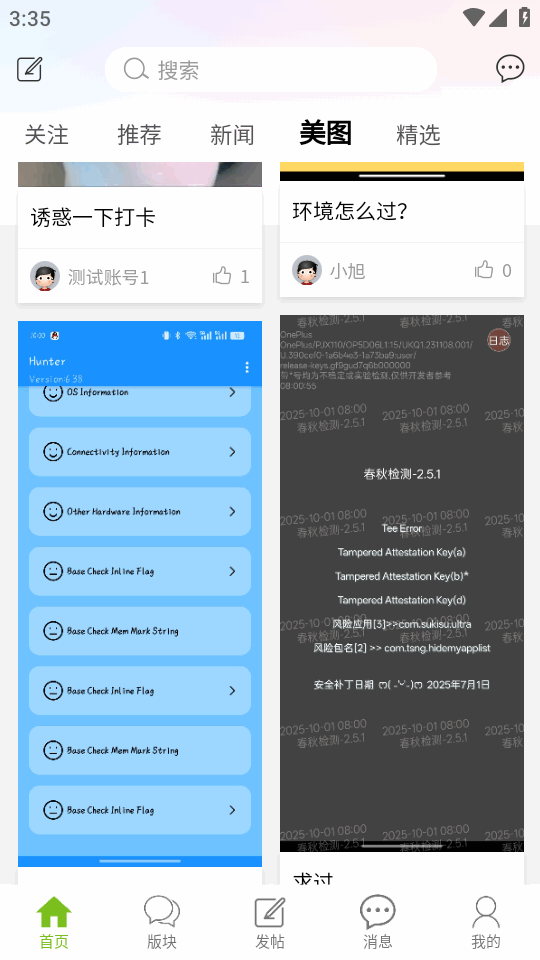 专门针对环境root检测问题讨论的玩机社区平台,张三丰社区app是个老牌的社交平台了,软件资源,游戏修改,技术分享,游戏分享,开源分享,magisk资源分享,手机美化功能等,打开即可使用,想要获取下载资源需要随意输入用户名及密码注册,操作很方便。