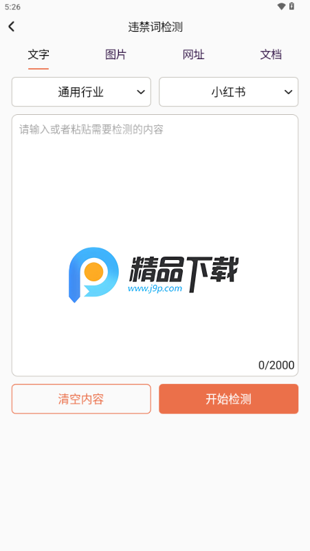 1、进入软件以后,我们就可以选择我们想要检测的内容,可以是文字,图片或者是网址;