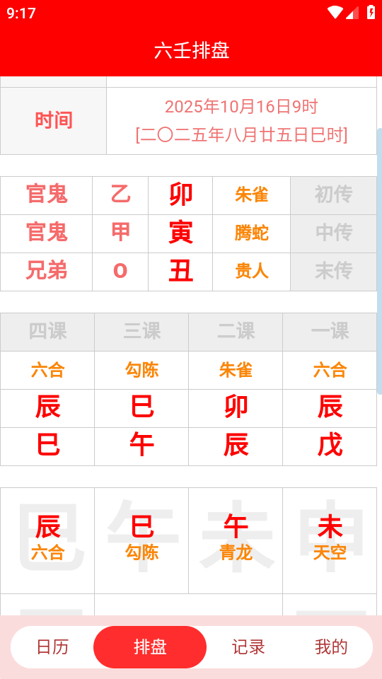 5、点六壬排盘也是同样的操作。