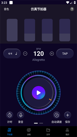 2、进入app就可以使用仿真节拍器,还可以根据自己的需要来调节;
