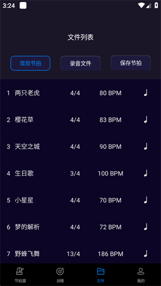3、个性化训练:用户可以自由选择喜欢的节拍器,通过节拍训练的方式助力自己掌握曲子节奏,提升演奏的流畅度和精准度。
