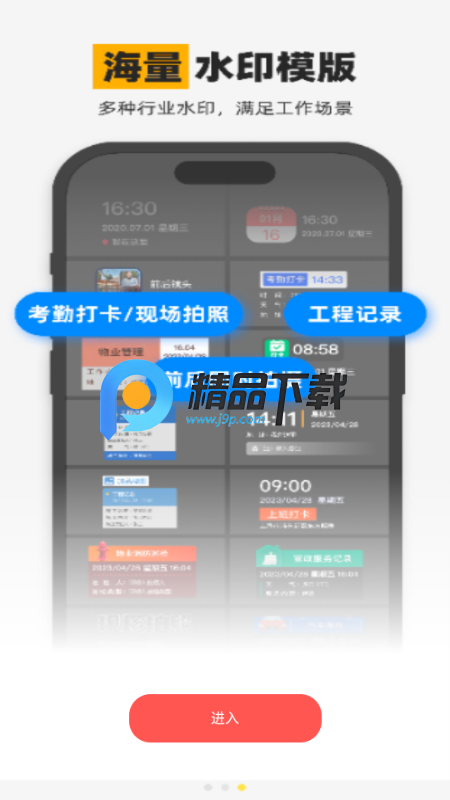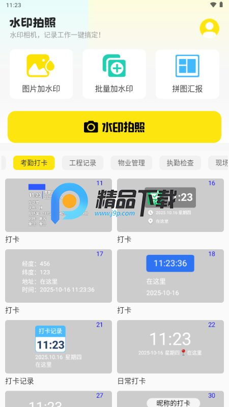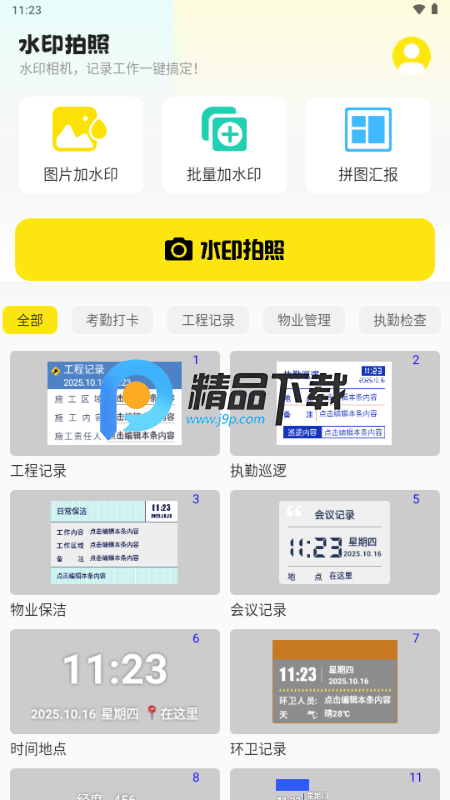 多样化模板:提供多种水印模板,如今日打卡、工程记录等。