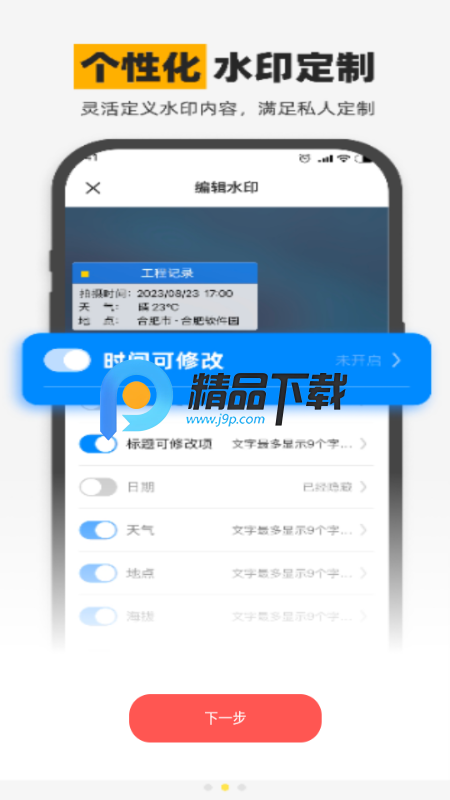 灵活的水印修改:用户可以一键获取当前时间地点作为水印,方便快捷。